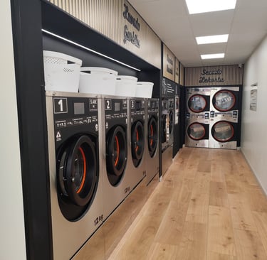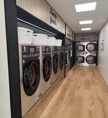 Nuestra lavandería está diseñada para que tengas espacio de sobra para doblar la ropa, esperar o moverte sin agobios. Un entorno moderno, limpio y agradable en el centro de Portugalete.
